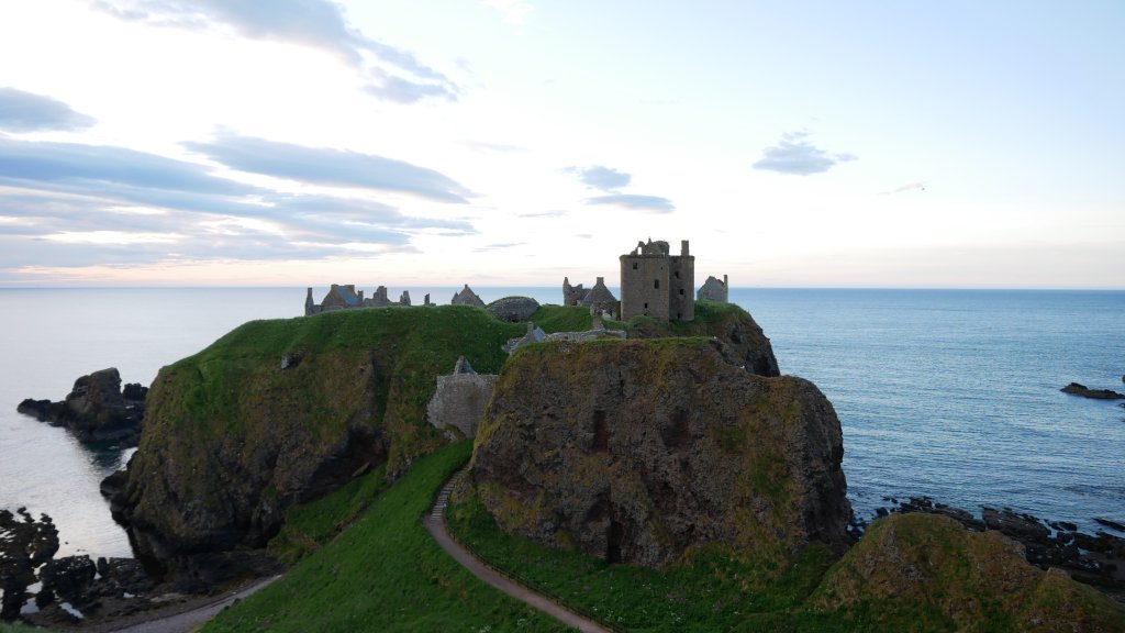 From the harbour, take the scenic Coastal Path to the iconic Dunnottar Castle. This dramatic cliff-top fortress, perched high above the sea, is one of Scotland’s most photographed landmarks. The walk takes about 30 minutes each way and offers stunning views of the rugged coastline and the North Sea, with plenty of opportunities to capture memorable photos along the way. Once you reach the castle, you can explore its fascinating ruins and learn about its storied past, including its role in safeguarding the Scottish Crown Jewels.