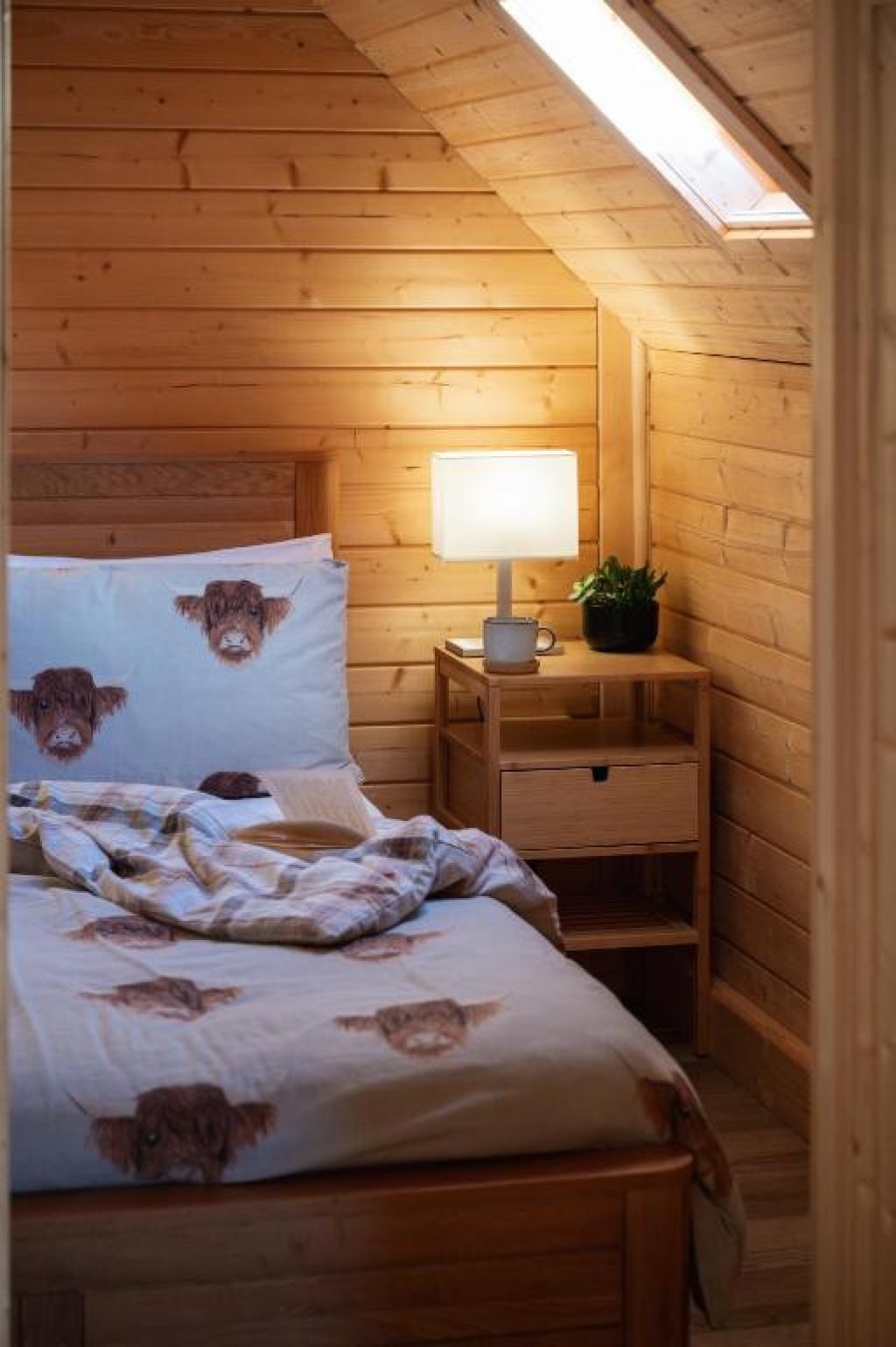 It’s a working glamping site with farm animals: Highland cows on site, and guests can meet them.