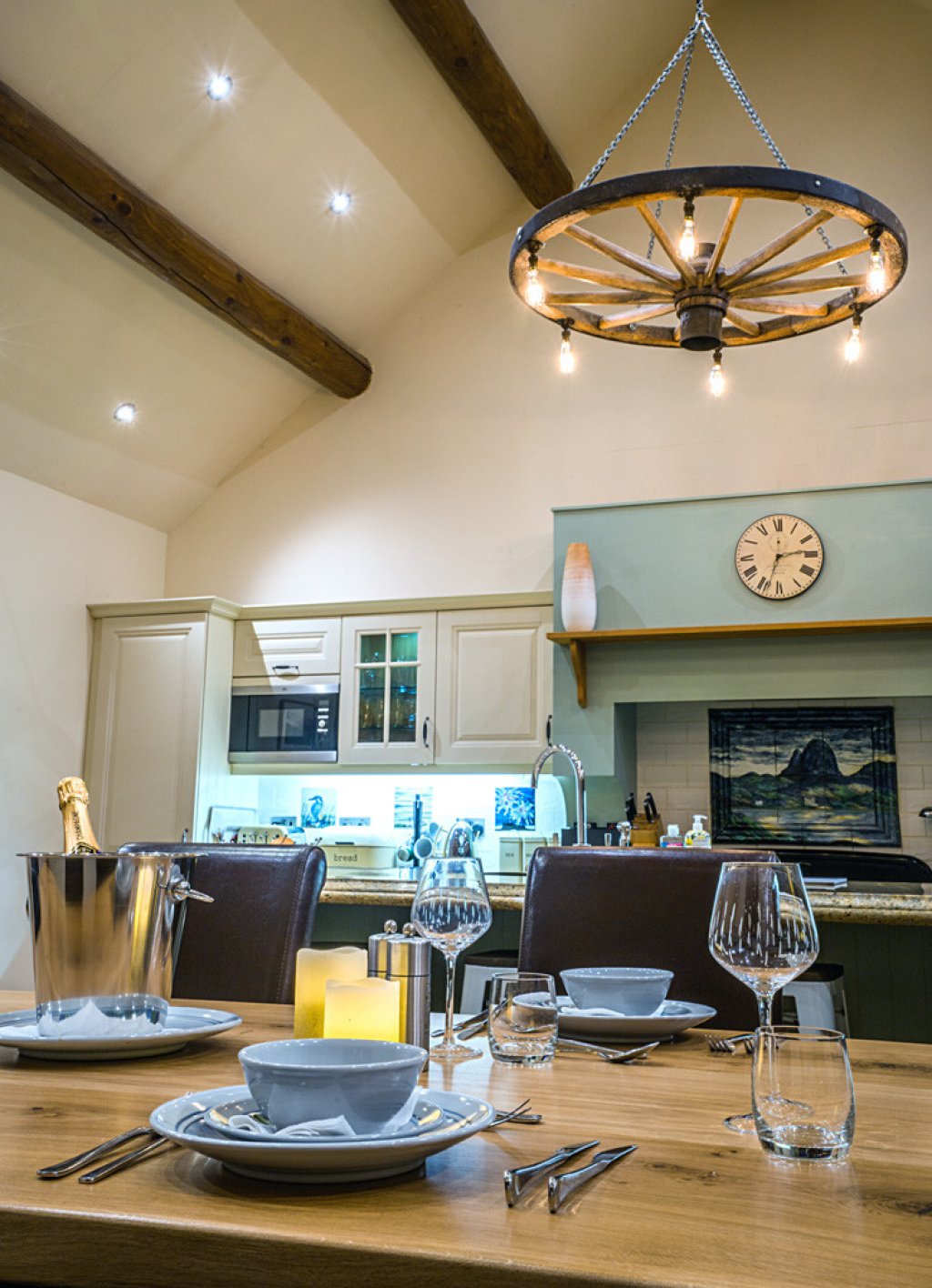 The social heart of the lodge is a grand open-plan kitchen and living area, designed to bring the outside in. Think oversized sliding glass doors, statement island, top-tier kitchen gadgets, and mood-setting chandeliers.